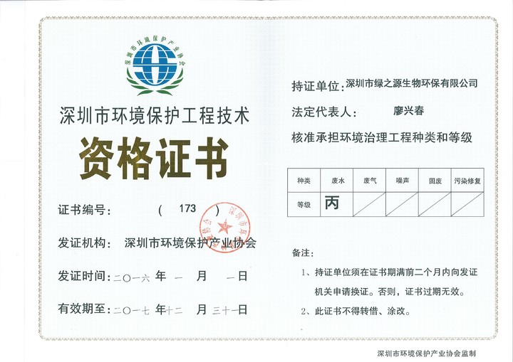 深圳市綠之源生物環(huán)保有限公司成立十余年,是經(jīng)深圳市環(huán)保局批準(zhǔn)的具有專項(xiàng)環(huán)保工程設(shè)計資質(zhì)的企業(yè),深圳市高新技術(shù)企業(yè)。公司從創(chuàng)立初期的水處理藥劑、水處理設(shè)備的研發(fā),逐步成長為環(huán)保類綜合性服務(wù)的企業(yè),目前年?duì)I業(yè)額約三千萬,集水處理藥劑研發(fā),工業(yè)廢水、廢氣及農(nóng)村生活污水處理等環(huán)保工程的設(shè)計、安裝、調(diào)試、運(yùn)營、技術(shù)咨詢一條龍服務(wù),為珠三角眾多企業(yè)服務(wù),解決相關(guān)環(huán)保難題,并取得了良好的社會效益和環(huán)境效益。
